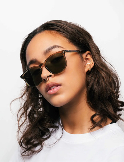 Deze zonnebril heeft een harmonieuze mix van rechte lijnen en zachte rondingen, wat zorgt voor een tijdloze uitstraling. Een veelzijdig accessoire dat een breed scala aan looks zal complimenteren.