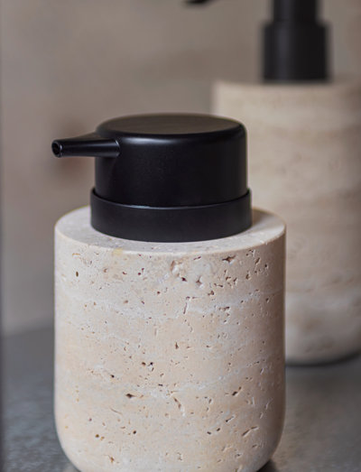 The tall TRAVERTIN dispenser from Mette Ditmer combines minimalist design with the natural beauty of travertine. Featuring unique patterns and a raw texture, the dispenser adds a warm and organic touch to your bathroom or kitchen. Its robust quality and timeless aesthetics make it a practical and elegant solution for hand soap, dish soap, or lotion.