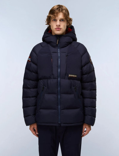 Inspired by Napapijri's archives, the Moesa puffer jacket is built with a chin guard, invisible zipped chest pockets and hidden elastic on the cuffs and hood. Thermoregulating thanks to lightweight Thermo-Fibre™ insulation, it's finished with an adjustable hem, embossed logo lining and a mixture of printed and patch details.