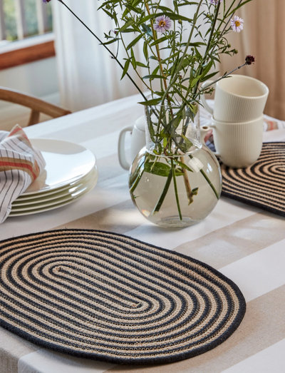 A wonderful and very decorative placemat with its oval shape and "stripes" in alternating cotton and corn that form a wonderfully vibrant and rustic pattern, a joy to decorate the table with both everyday and festive.