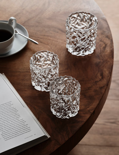 The carat collection is based on a contemporary interpretation of the traditional glass grinding for which orrefors is worldrenowned. the irregular geometry produces beautiful reflections of light in the crystal. designed by lena bergström.