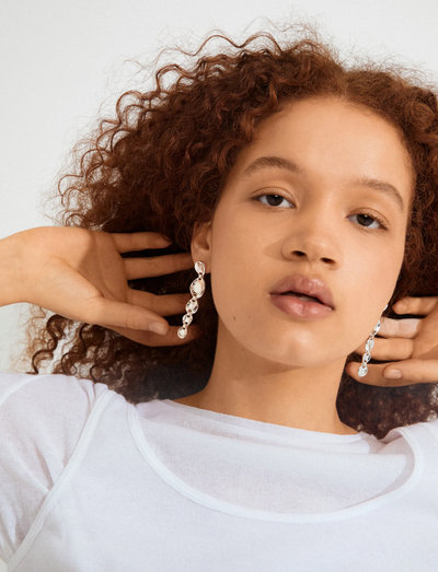 Met een getextureerd oppervlak en glanzende afwerking zijn deze oorhangers een must-have voor elk feest. De lange, beweeglijke hangers vangen het licht en voegen een coole, opvallende twist toe aan zowel alledaagse als avondlooks. Deze oorbellen zijn gemaakt van 99% gerecyclede materialen.