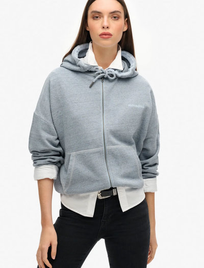Deze hoodie met ritssluiting heeft een oversized pasvorm, waardoor het een comfortabele en stijlvolle laagjesoptie is. Met een licht geborstelde voering, geribbelde boorden en een geborduurd logo op de borst, biedt deze hoodie zowel warmte als een onderscheidende look. Het kenmerkende label bij de zoom voegt een subtiel merkdetail toe.