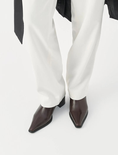 Giselle is the refined ankle boots from Vagabond. The style is crafted from black leather with pointed toes and zip-side fastening. The sleek block heels measure 57mm.