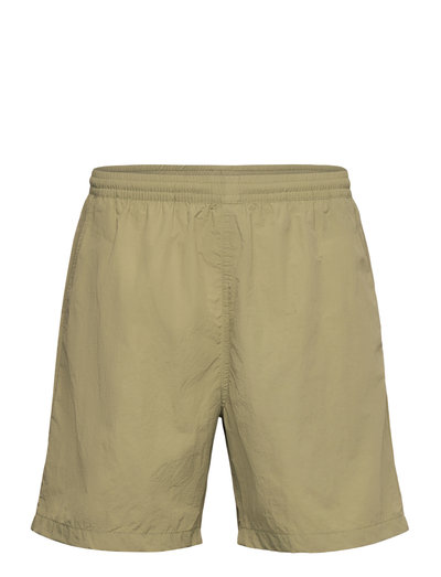 A pair of classic swim shorts made from a soft and lightweight recycled polyester. They have side slit pockets, an elasticated drawstring waistline, and are lined with a soft sporty mesh.