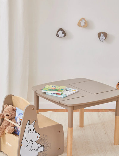 Organiser barnerommet ditt med et snev av sjarm med disse herlige Mummi-krokene. Dette settet med tre knagger har forskjellige Mumin-figurer som gir et morsomt og funksjonelt element til veggen. De nøytrale fargene og de naturlige treelementene gjør at disse knaggene passer sømløst inn i enhver innredning, noe som gjør dem til et perfekt tilskudd til soverom, lekerom eller inngangsparti.