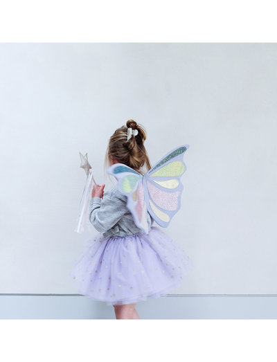 Lilac tulle skirt with lots of tiny hearts, elastic waist and a satin tie with heart pendants. Age: 3-8 yrs