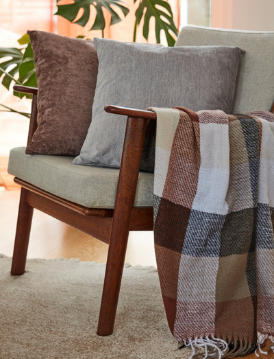 Dette vevde pleddet er så vakkert i sine ruter når fibrene blandes for nye fargetoner og avsluttes med fine lange frynser, pleddet er lett og smidig så det er virkelig deilig å slenge det over skuldrene når det blir litt kjølig.