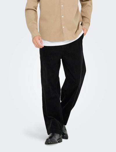 These trousers offer a relaxed fit, perfect for creating a stylish, everyday look. Featuring side pockets and an elasticated waistband with a drawstring cord, they combine practicality with a casual aesthetic, making them ideal for both school and work.