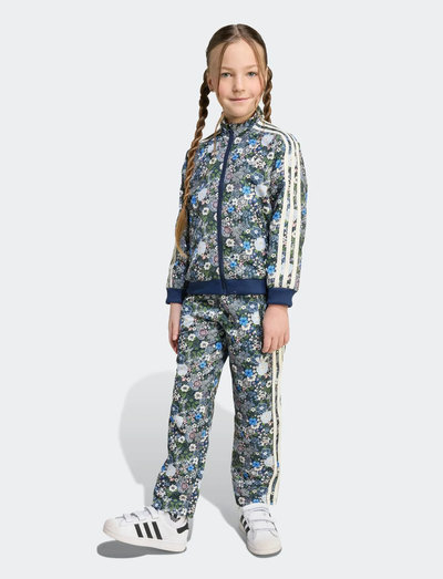 La barnet ditt vise frem en klassisk stil med dette treningssettet, med livlige blomsterprint fra Liberty London. Dette settet inkluderer en løstsittende overdel og bukser med normal passform, perfekt for hverdagsbruk. Laget av 100 % resirkulerte materialer, som blander ikonisk design med moderne stil. Den broderte Trefoil-logoen og en praktisk glidelåslukking gir et snev av signaturstil.