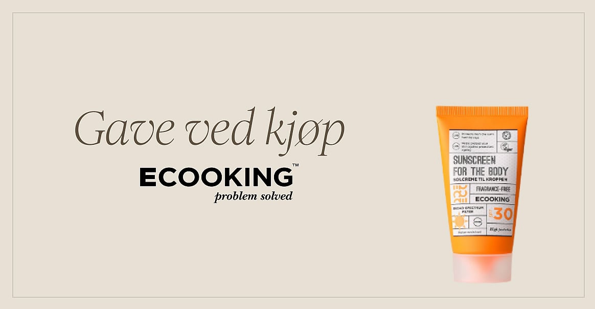 Kjøp for 600 NOK fra Ecooking og få en gratis ECOOKING Sunscreen Body SPF 30 (small). Gaven har en verdi på 215 NOK og er tilgjengelig så lenge lageret rekker.