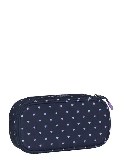 The oval pencil case is spacious (room for a protractor) and has a separate section for the most frequently used pencils and an internal zipped pocket.