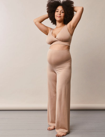 Words cannot describe how comfortable these maternity lounge pants truly are - they must be experienced. With long, flowing wide legs and a beautiful drape, they offer unparalleled comfort. The soft double-layered over bump panel has no chafing seams, and is especially appreciated by moms who have had C-sections. Wear it folded up or down for a little extra support. These maternity trousers are as elegant as they are comfortable - before, during, and after pregnancy.