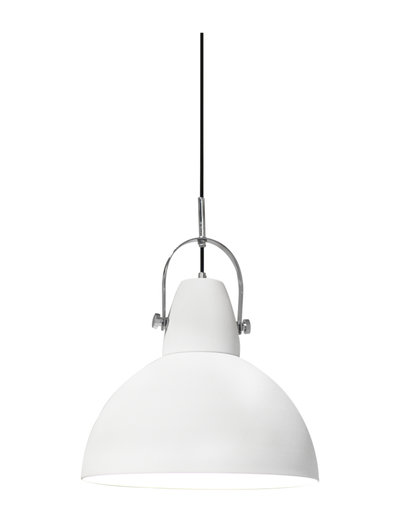 Hoop is a ceiling lamp suitable for placement over your kitchen table. The lamp is suspended from a chrome grip and two screws which provide a pleasing detail. Hoop has a diameter of 38 cm and provides excellent, focused lighting over the table.