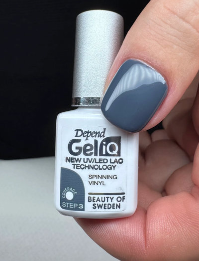 3. Farge: Deretter påfører du et tynt lag med Gel iQ farget lakk. La det herde i 30 sekunder under UV-/LED-lampen.