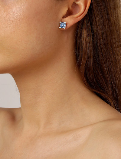 Disse klassiske ørestikkene har en fengslende fasettslipt krystall i midten, vakkert supplert av fire mindre, glitrende krystaller. Stiften er laget av kirurgisk stål, mens kroppen har en sølvfarget belagt messingkonstruksjon. En dansk design, disse øredobbene er fri for kadmium, bly og nikkel.