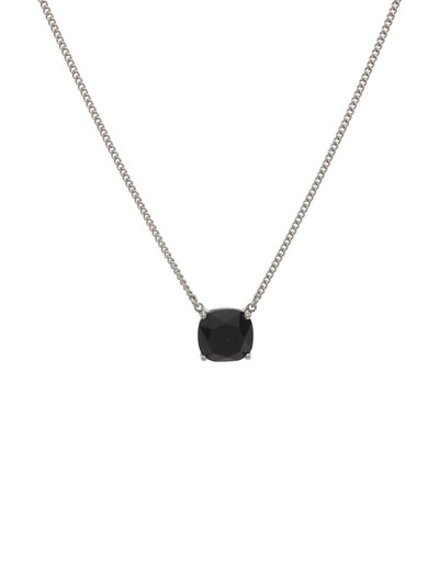Et klassisk halskjede med et stort, cushion-cut, fasettert krystallanheng. Anhenget henger fra et delikat kjede med en polert finish og inkluderer en forlengelse for justerbar lengde.
