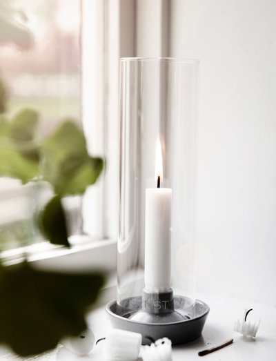 Ernst lysestake med glassylinder er klassisk og vakker å se på. lysestaken gir en herlig følelse i hjemmet og er tilgjengelig i fargene hvit, lysegrå og mørkegrå.