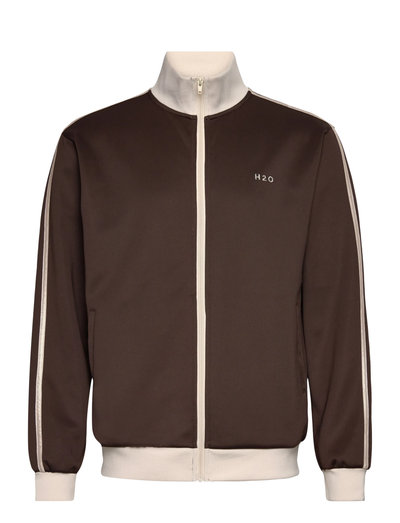 Denne H2O tracksuit zip-jakke er et stilig og komfortabelt valg for hverdagsbruk. Den har et klassisk design med full glidelåslukking, lange ermer og en stående krage. Jakken er laget av et mykt og pustende stoff som er perfekt for komfort hele dagen. Den har også en liten logo på brystet og hvite striper på ermene.