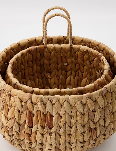 Få oppbevaringskurvene opp av gulvet med de hengende kurvene, som dekkende nok kalles Hang. De kommer i to størrelser og er designet av House Doctor i vannhyacint. Mønsteret er håndvevet og er et vitnesbyrd om håndverket bak designet. Heng kurvene fra krokene på badet som praktisk og elegant oppbevaring av toalettpapir, håndklær og andre ting. Det brede, vevde mønsteret og det naturlige materialet myker opp fliser, marmor og metaller. La hyasint være et sentralt materiale på badet, i stuen og på kjøkkenet for å danne et sammenhengende utseende i hjemmet.
