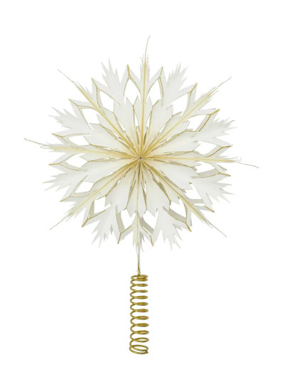 Løft juletreet ditt med et snev av eleganse ved hjelp av denne utsøkte håndlagde toppstjernen. Den intrikate utskårne designen er laget av hvitt papir, og er vakkert fremhevet med gullglitter, og gir en blendende gnist til den festlige innredningen din. Stjernen støttes av en gullbehandlet jernspiral, noe som sikrer en solid, men stilig passform på toppen av treet ditt.- Håndlaget hvit papirstjerne- Elegante gullglitterdetaljer- Solid gullbehandlet jernspiral- Klassisk design fremhever ethvert trePynt treet ditt med et tidløst snev av raffinement denne høytiden.