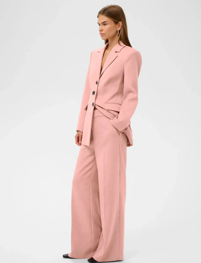 Med en flatterende, bred benlengde gir disse buksene en sofistikert silhuett. Designet har en klassisk linning og en glatt, ren finish, noe som gjør dem til et allsidig tillegg til enhver garderobe.