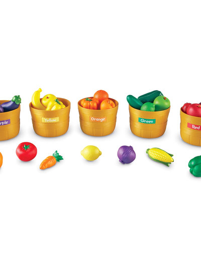 Utvikle fargegjenkjenning og sorteringsferdigheter med kurver med realistiske råvarer i riktig størrelse. Perfekt for fantasifull lek og ernæringsundervisning.