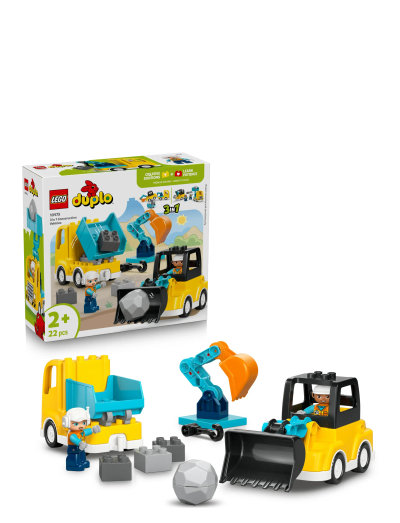 Få fart på små barns kreativitet med LEGO® DUPLO® Town 3-i-1 Anleggskjøretøy (10475) for barn fra to år Settet byr på seks alternative byggemodeller som gir barn masse leken ombyggingmoro.