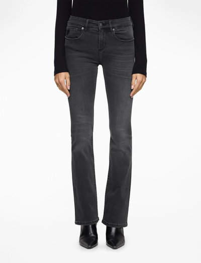 Flare passform – Formsydd fra hoftene til lårene og får en sleng fra kneet og vides ut rundt ankelen.