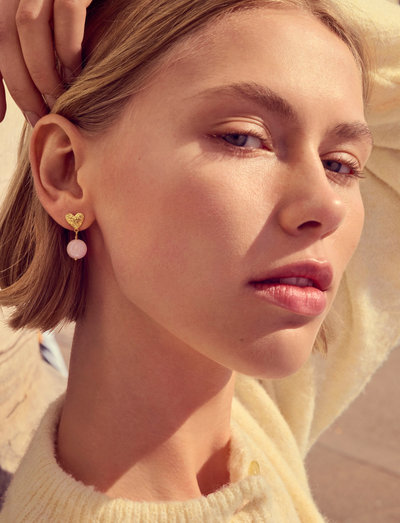 Disse elegante øredobbene har et unikt design. Hver øredobb har en hjerteformet topp. En myk stein henger delikat under. Perfekte for å legge til et snev av romantikk til ethvert antrekk.