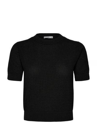 Denne åpne strikkegenseren er et stilig og komfortabelt valg for enhver anledning. Den har en klassisk rund hals og korte ermer, noe som gjør den perfekt for lagdeling eller for å bruke alene. Den åpne strikken gir et snev av tekstur og sofistikering til designet.