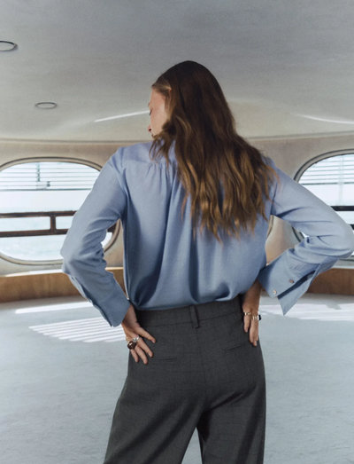 Disse dressbuksene er laget for en sofistikert look, og har et tidløst rutemønster. Den lange designen med rette ben har en komfortabel, middels høy midje og funksjonelle beltehemper. Avsluttes med leggdetaljer, sidelommer og en sikker glidelås-, knappe- og krok-og-malje-lukning.