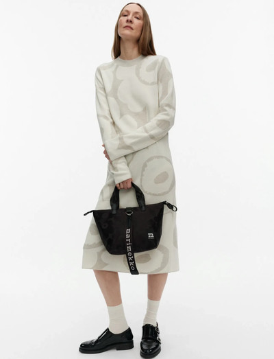 Denne skuldervesken har et jacquardstrikket mønster og tilbyr både stil og praktisk bruk. Den har glidelåslukking for å holde eiendelene dine trygge, samt et praktisk håndtak og en justerbar skulderstropp for komfortabel bæring. Det forede interiøret har en slip-in-lomme, og en nøkkelstropp er festet med en D-ring.