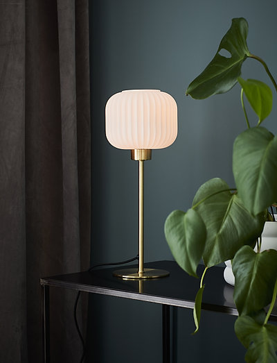 Sober lille bordlampe fra Markslöjd. Base i børstet messing med hvid glasskærm. 2m sort kabel med afbryder på ledningen og stik. 1xE14, Max 40W. Lyskilde medfølger ikke.