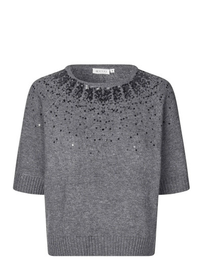 Subtil glitter løfter denne kortarmede strikken, noe som gjør den ideell for lagdeling eller bruk alene. De skinnende detaljene rundt halsen gir et snev av diskret glamour til hverdagsstilen din. Et komfortabelt valg for enhver anledning.