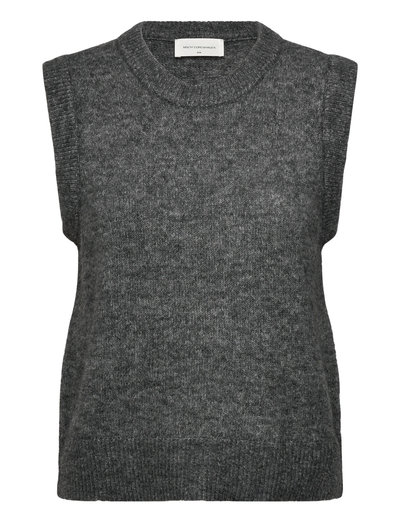 Strikket vest med rund hals, perfekt for lagdeling. Denne ermeløse strikken gir en komfortabel passform og en allsidig stil.