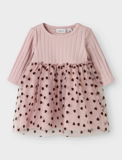 Denne kjolen med et lekent trykk er et sjarmerende tilskudd til ethvert barns garderobe. Det myke jersey-stoffet sikrer en behagelig passform, mens tyll-detaljene tilfører et snev av lunefullhet. Designet med lange ermer og en klassisk O-hals, og avsluttet med praktisk trykknappelukning.