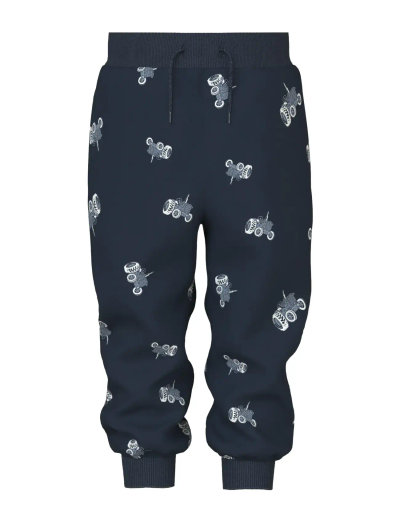 Disse myke joggebuksene har et heldekkende dinosaurtrykk, og er perfekte for hverdagsbruk. De har også en komfortabel elastisk linning med snøring og ribbestrikkede mansjetter.