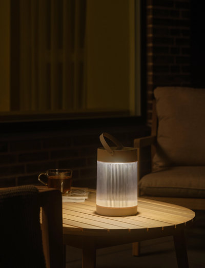 Coupar-serien fra den danske designduoen Says Who er en moderne versjon av den tradisjonelle lanternen. Med rene linjer og et likevel mykt og avrundet designuttrykk kombinerer serien uanstrengt klassiske egenskaper med et moderne, tidsriktig uttrykk. Denne bærbare lampen lades opp av sollyset om dagen og kan dimmes i tre trinn for å skape den perfekte stemningen. USB-kabel for hurtiglading følger med.