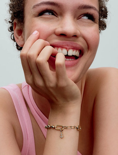 Denne mini-anhengssjarmen har en klassisk ankerform som minner deg om å være tro mot deg selv. Den er laget av 14k gullbelagt metall, og den ene siden av ankeret er satt med glitrende stener, mens den andre har en tekstur med mikroperler. Denne sjarmen er et vakkert tillegg til enhver åpningsbar lenke og vil gi et snev av eleganse til utseendet ditt.