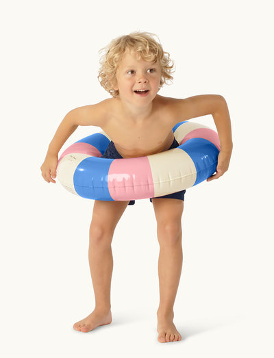 Nå er det slutt på de spinkle flottørene vi kjente før. Petites Pommes-baderingen er en gjenfødt barndomsklassiker - laget med sans for detaljer for å vare i flere sesonger. De karakteristiske stripete flottørene fra Petites Pommes kommer i fire forskjellige størrelser, fra småbarn til voksne, og i en rekke vakre farger som gjør enhver sommerlook komplett! - Leveres i en gjenbrukbar pose av økologisk bomull for enkel oppbevaring. - Ekstra fine innvendige sømmer for førsteklasses komfort. - Laget av kraftig, slitesterkt materiale som tåler tidens tann. - Godkjente, trygge luftventiler. - Inkludert reparasjonslapp hvis du ved et uhell skulle få en liten punktering. - Alle Petites Pommes-flottører er håndtrykt. Denne prosessen er helt manuell - avhengig av trykket fra hånden kan det forekomme små fargevariasjoner mellom produktene.