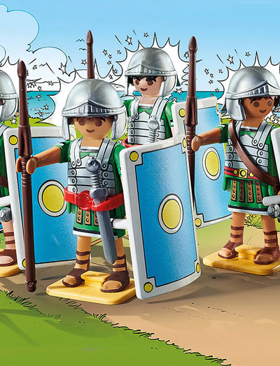 PLAYMOBIL-settet består av fire romere med hjelmer, sverd og skjold. En bunnplate følger med hver figur slik at de kan stå mer stabilt. Alle figurer har et ansiktsuttrykk som kan endre seg, slik at du kan se uttrykket før og etter kampen.