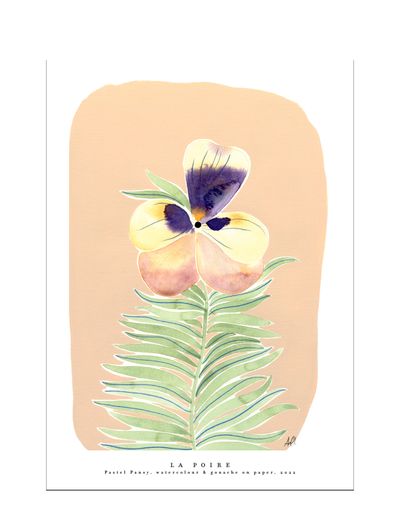The art poster is a reproduction of the original artwork “Pastel Pansy”, which was painted in watercolour and gouache in 2022. The reproduction has been scanned in order to be able to reproduce the color and brushstrokes of the original artwork as best as possible.