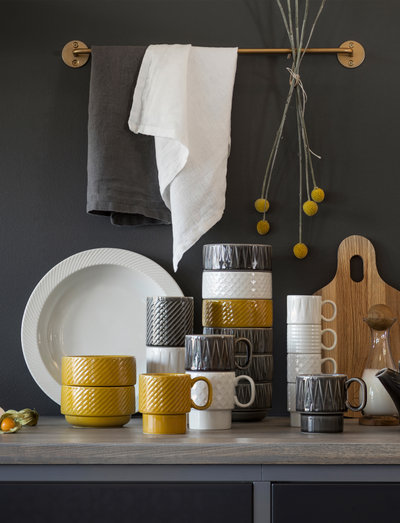 Denne skålen med det karakteristiske relieffmønsteret er en del av Coffee & More-serien som Sagaform har skapt i samarbeid med designeren Margot Barolo. Seriens design er en flørt med 1970-tallets direkte, lekne og direkte formspråk. Serien består av ulike deler, mønstre og farger, og tar seg best ut med en herlig blanding av alt. Tåler mikrobølgeovn og oppvaskmaskin.