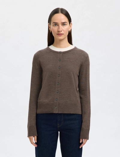 Denne cardiganen er laget av myk merinoull, og gir et komfortabelt og stilig lagvis antrekk. Den har en klassisk rund hals, lange ermer med ribbestrikkede mansjetter og en knappestolpe foran som gjør den enkel å bruke. Den normale passformen gjør den til et allsidig tillegg til enhver garderobe.