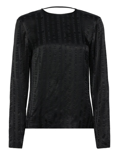 En elegant, langermet topp i et slående Tiger Stripe Jacquard-mønster. Forsiden har rene, minimalistiske linjer, mens baksiden viser en elegant skulpturert U-utringning. En fin stropp forbinder skuldrene og gir struktur. Den blanke twill-kanten som rammer inn halsutringningen gir en skarp, polert kontrast. Kombiner den med bukser for en koordinert look.