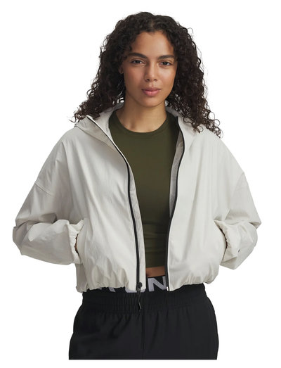 Denne vevde jakken er designet for lett dekning, og gir en behagelig passform og følelse. Den har full glidelåslukking, en hette for ekstra beskyttelse og elastiske mansjetter og kant for å holde elementene ute.