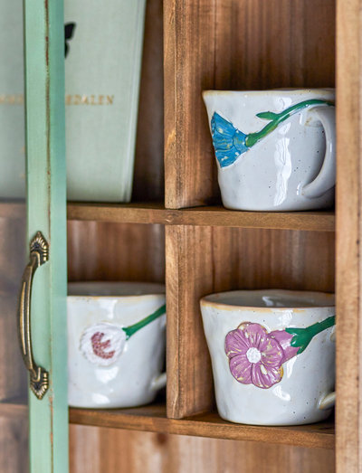 The Loua Cups by Creative Collection are a cozy set of 3 cups. Each cup is hand-decorated with a flower, adorning both the front and back of the cup, in beautiful contrast to the cup's rustic design. Cozy on the shelf and for coffee breaks. Due to the nature of the glaze and the handmade technique, color variations may occur.