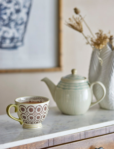 The Maple Mug by Creative Collection is a charming cup with a handle in a delightful brown circle pattern, Mix and match with tableware in other colors and patterns for personal and homely table setting and kitchen decor, Each piece is unique as it is decorated by hand,