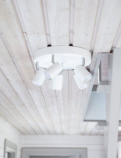 The correct ceiling spotlight 5-spots is available in several colour schemes; black, mat white and gold-coloured metal. it creates a modern and classic splash of colour in your hallway, bedroom, den, kitchen or lounge. the spotlights are directional to provide you with a customized light. we recommend that you buy dimmable gu10 led sockets to raise and lower the light as you please and achieve the desired light quality. the correct ceiling spotlight 5-spots measures 14 cm in height and has a diameter of 30 cm. using ceiling spotlights makes it easier in so many ways because each spotlight does its own job of providing the room with a lighting effect. illuminate paintings, a still-life, point it to your tv or your desk when you want to work. the correct ceiling spotlight is a practical product that suits any home.